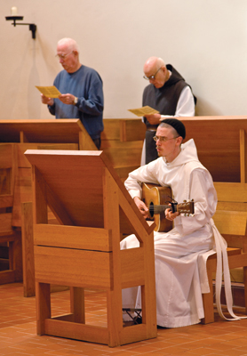 Mi trabajo requiere que, algunos domingos por la mañana, tenga que repasar la música de la Misa con los cuatro hombres que cantan las armonías. Eso puede resultar exasperante. Por un lado, la última lección de piano que tuve fue en tercer grado, y sólo he tomado unas pocas lecciones de guitarra, así que difícilmente estoy preparado para hacerlo. Sumado a esto, no me siento cómodo teniendo una posición de autoridad sobre hombres que han estado en el monasterio desde antes que naciera mi padre.